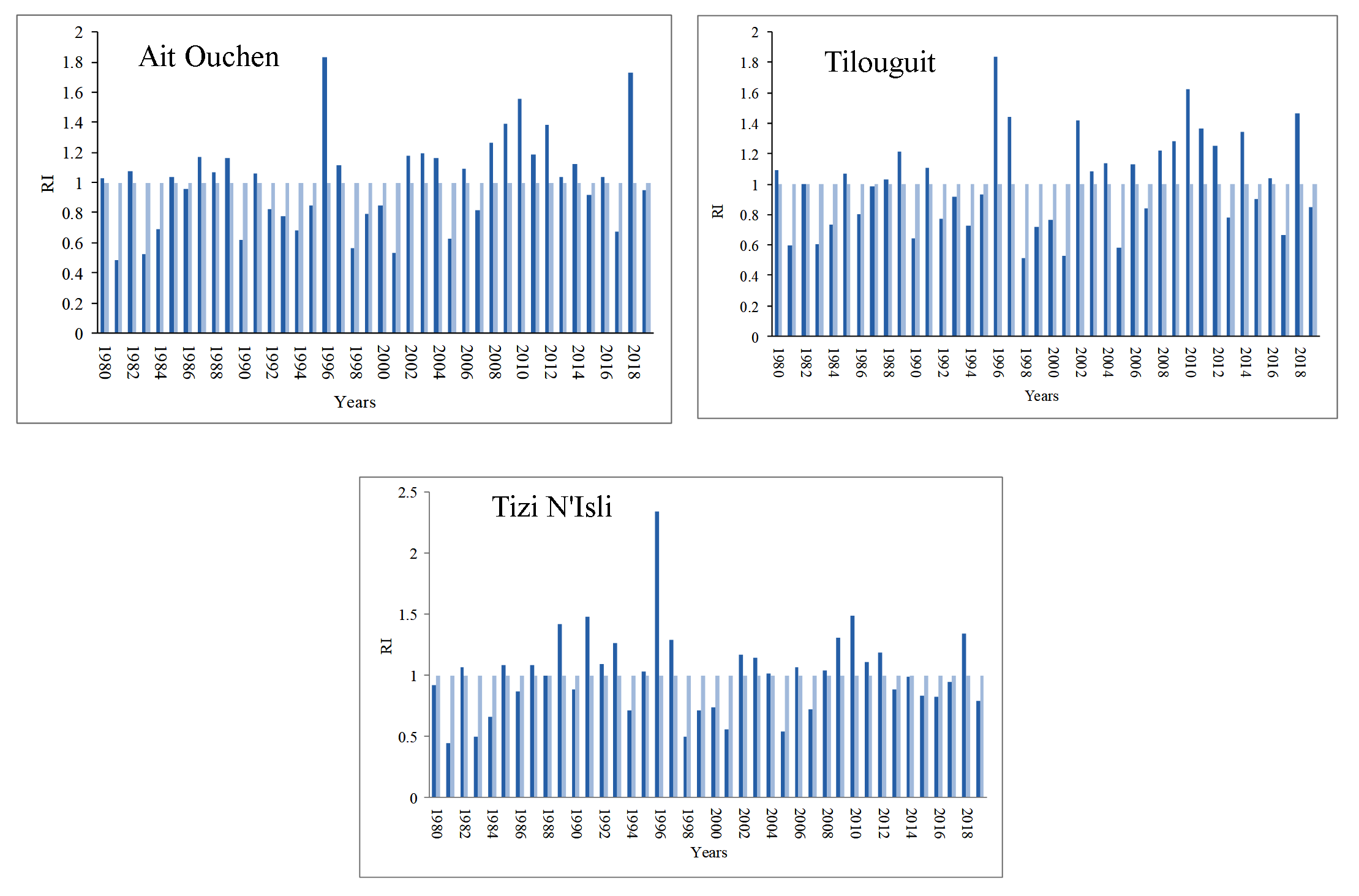 A year is classified as dry if the RI is less than 1 (Rognon, 1997).
