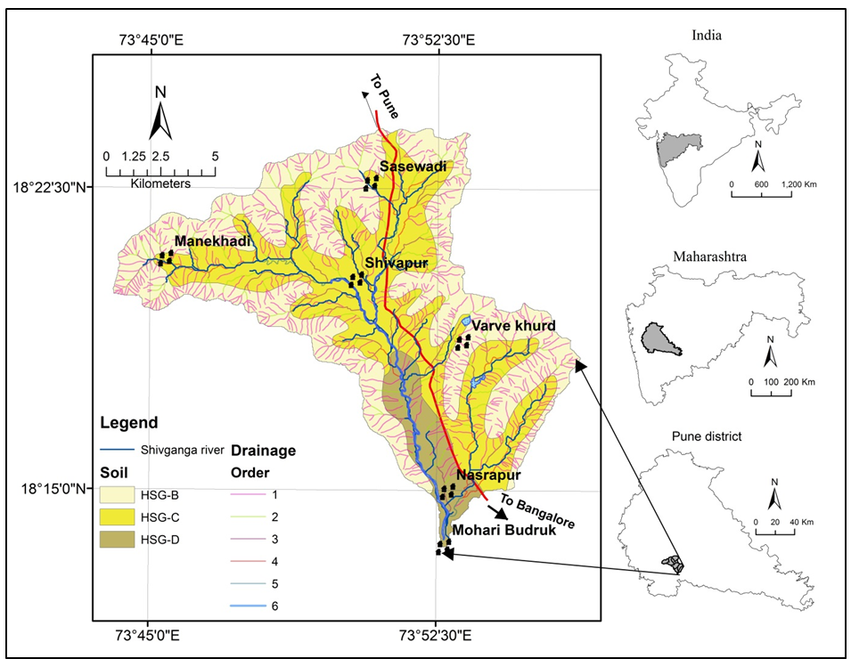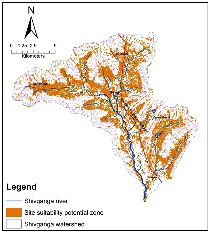 To study the SWC sites suitability, Shivganga watershed has been selected as a representative of semi-arid, basaltic region of Western India, showing high rainfall-runoff potential. The available surface runoff has to be harvested in respective structures and to be utilized during the water scarce period for drinking, domestic and agricultural purposes. This warrants the potential soil erosion arresting and rainwater harvesting at suitable locations and will definitely help to retain soil cover and water availability.