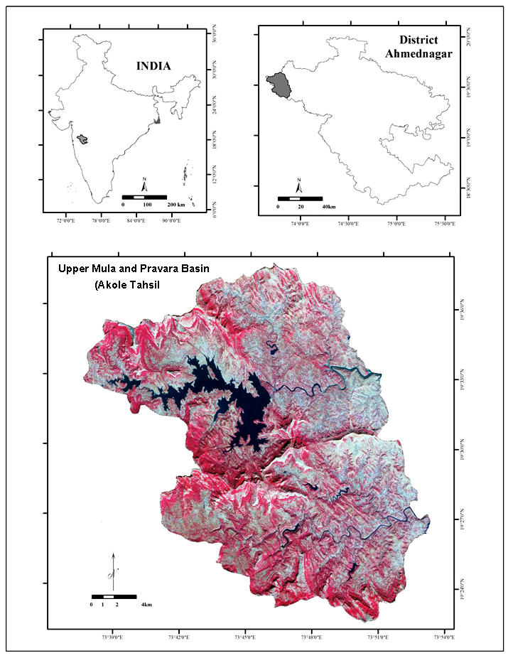 High resolution (5.8m) satellite data (cloud free) i.e. IRS P6 LISS-IV (path 095 and row 059) (21st November 2013) was procured from National Remote Sensing Centre (NRSC), Hyderabad, India and used for the spatial analysis.