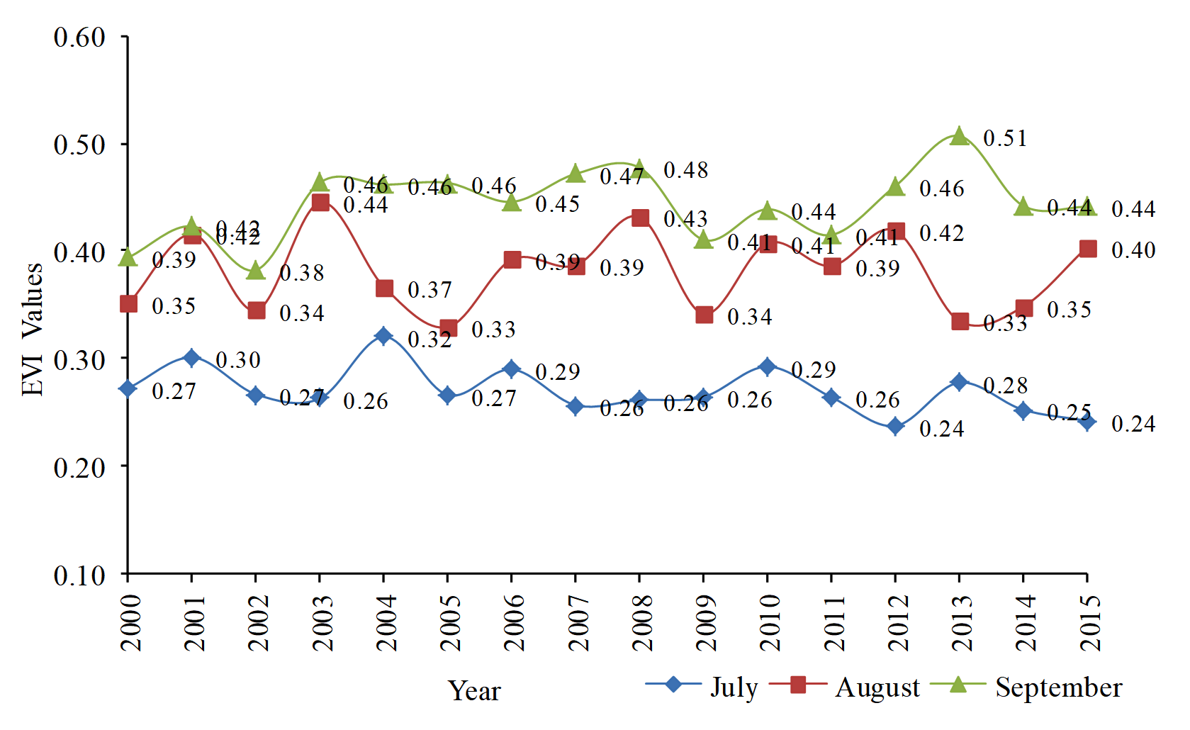 Figure 19. Mean EVI Pixel Value: July to September (2000 to 2015)