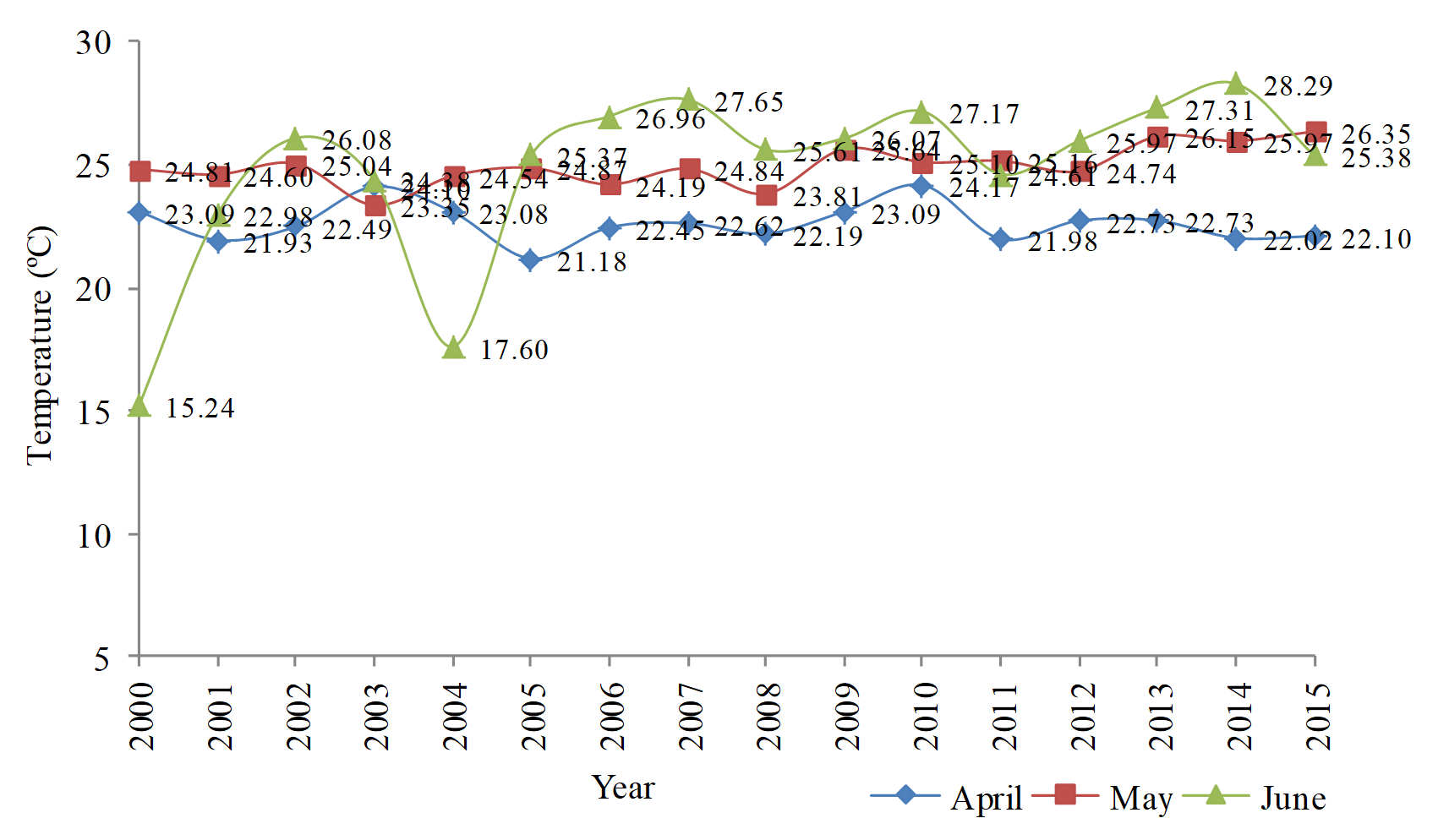 Figure 6. Mean Daytime Temperature: April to June (2000 to 2015)