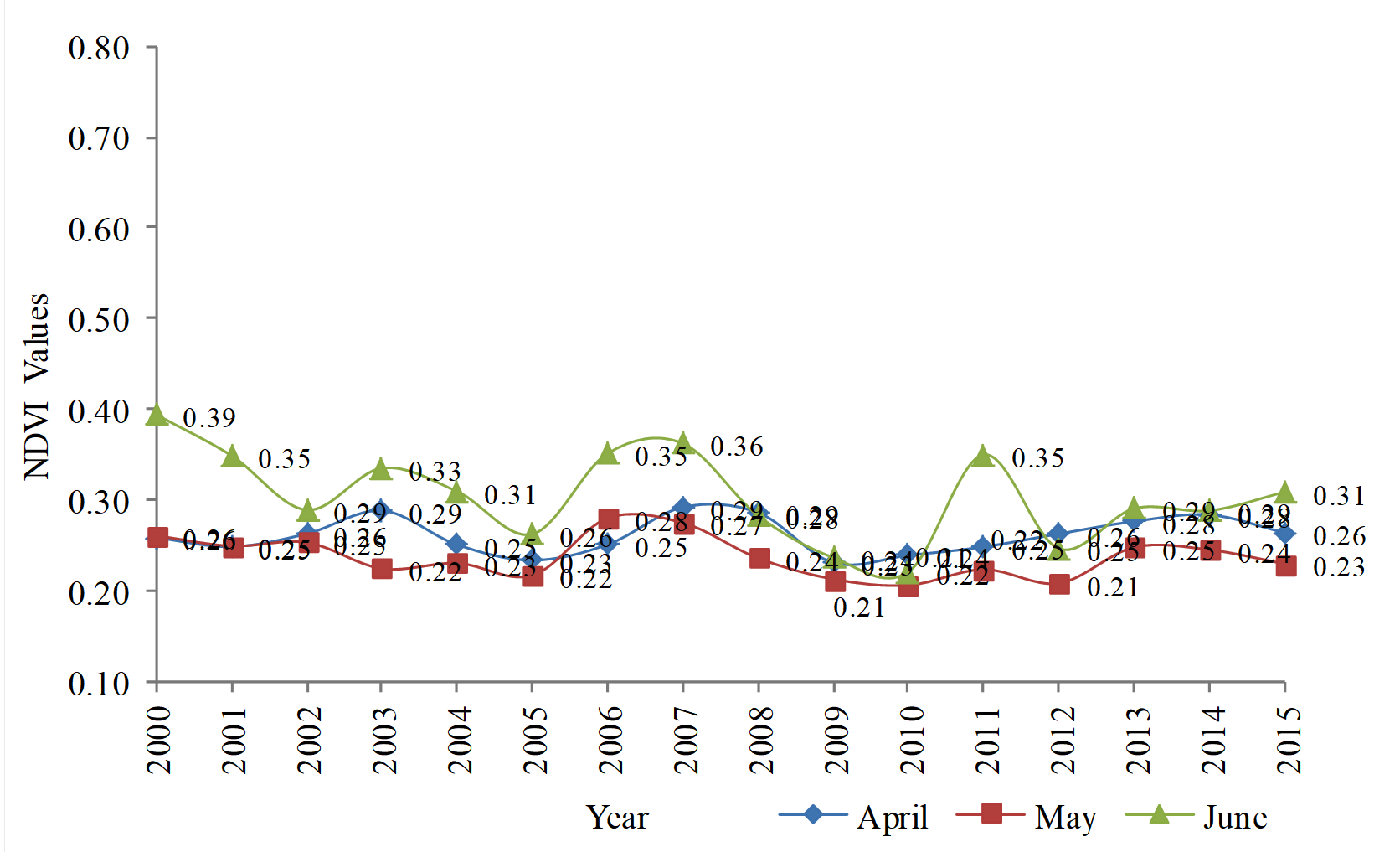 Figure 14. Mean NDVI Pixel Value: April to June (2000 to 2015)