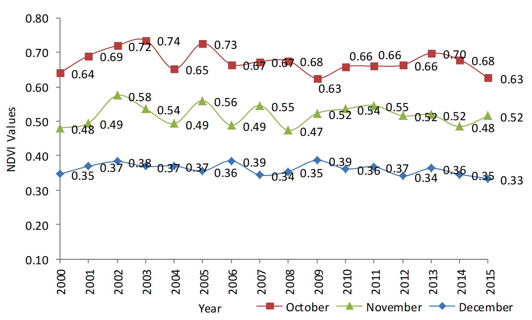 Figure 16. Mean NDVI Pixel Value: October to December (2000 to 2015)