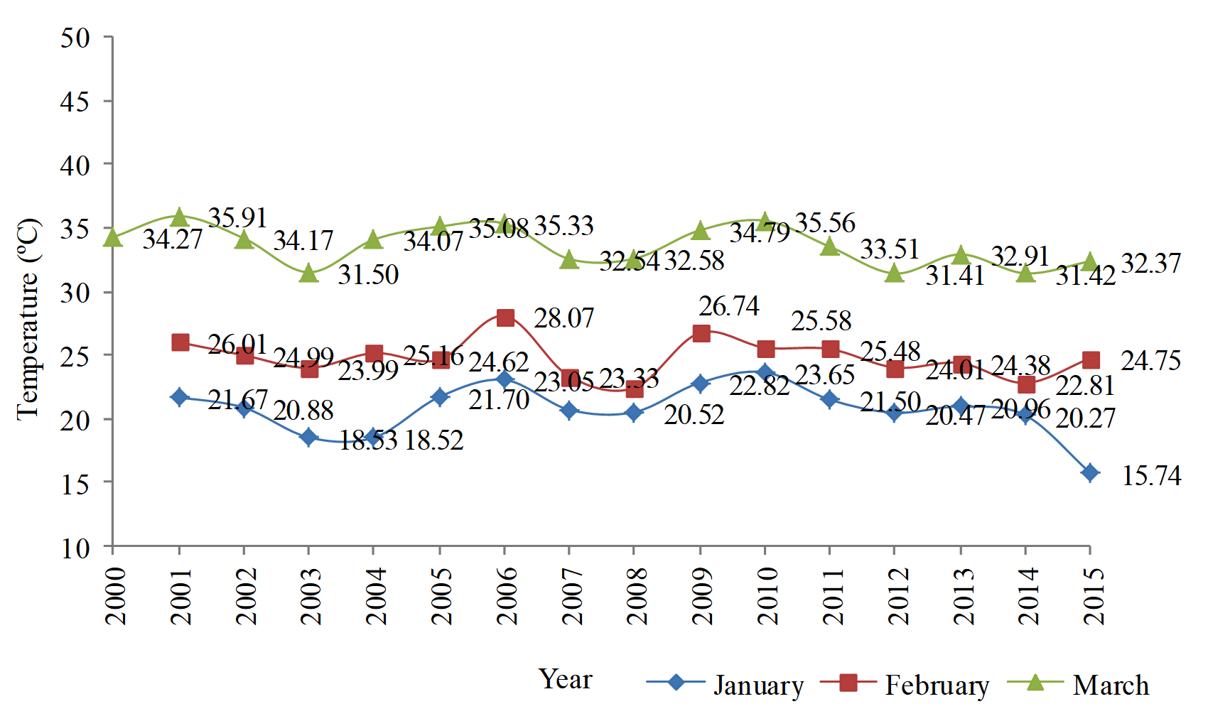 Figure 5. Mean Daytime Temperature: January to March (2000 to 2015)