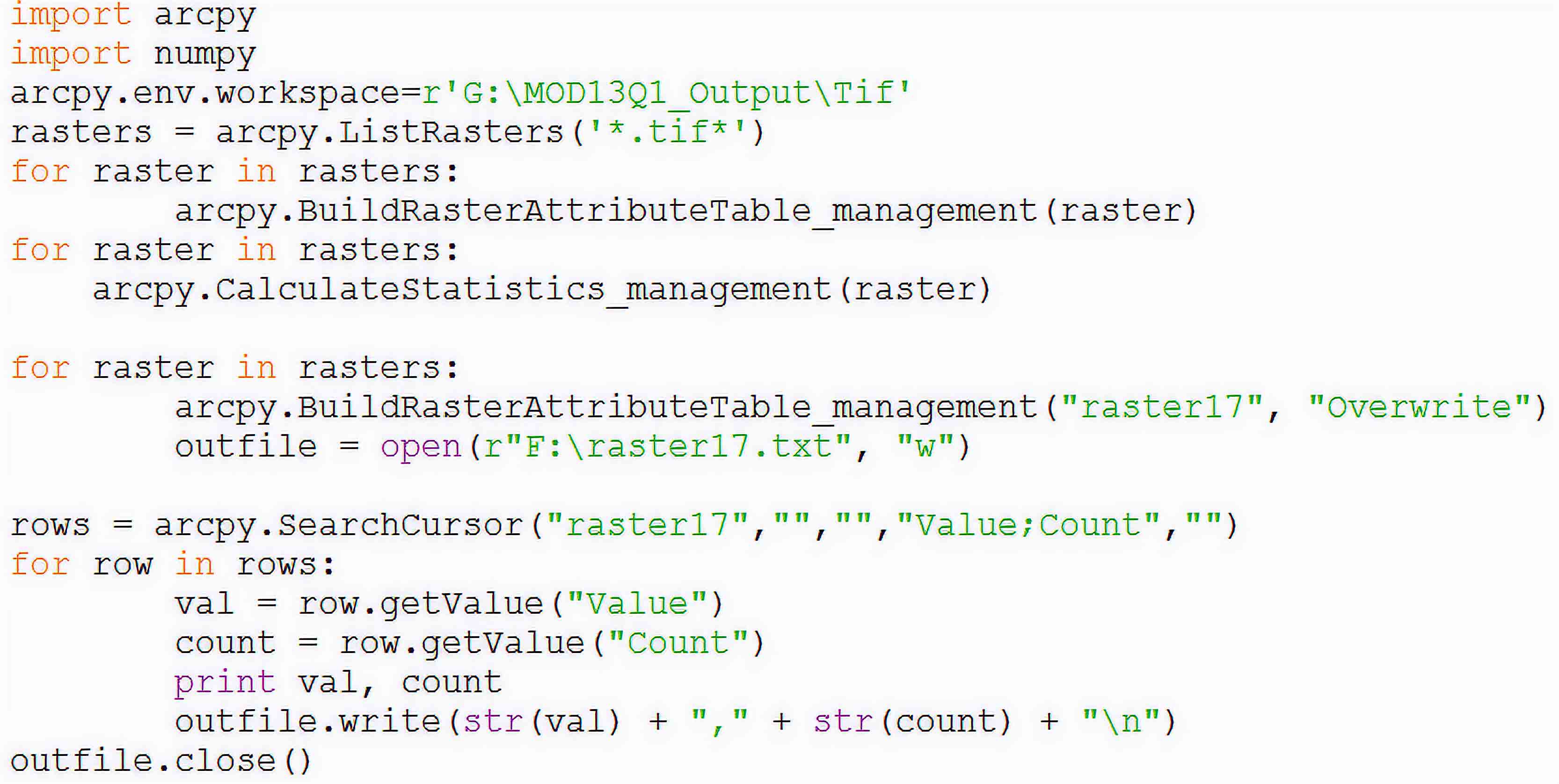 Python, programming language was used to retrieve and analysis of NDVI, EVI and LST from 1098 tiles of MODIS datasets.