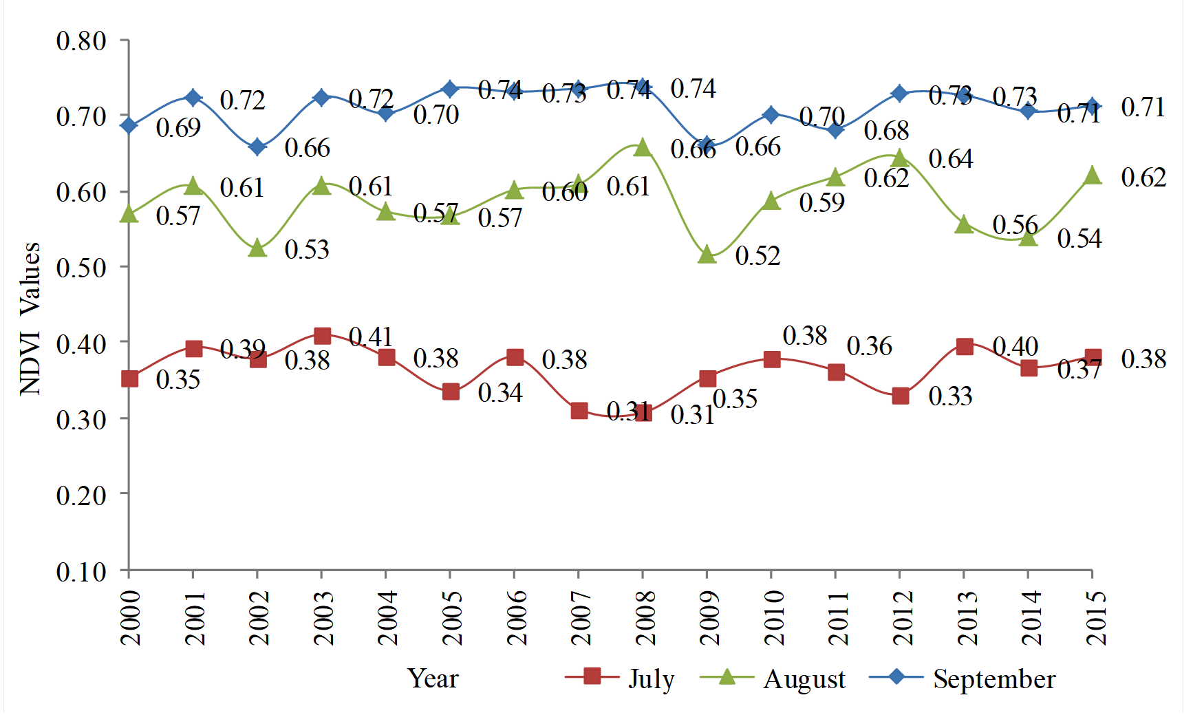 Figure 15. Mean NDVI Pixel Value: July to September (2000 to 2015)