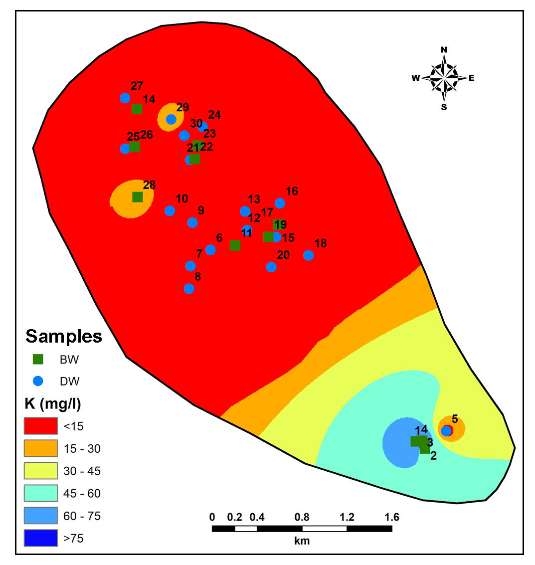 In many samples, low concentration of Potassium (K) is observed due to non-appearance of Potassium rich minerals (Subbarao et al., 1994; Gaikwad et al., 2019). However, increase of K in groundwater in downstream part of the study area (Figure 10) is due to use of high fertilizers and anthropogenic activities (Pawar et al., 2008; Kale et al., 2010).