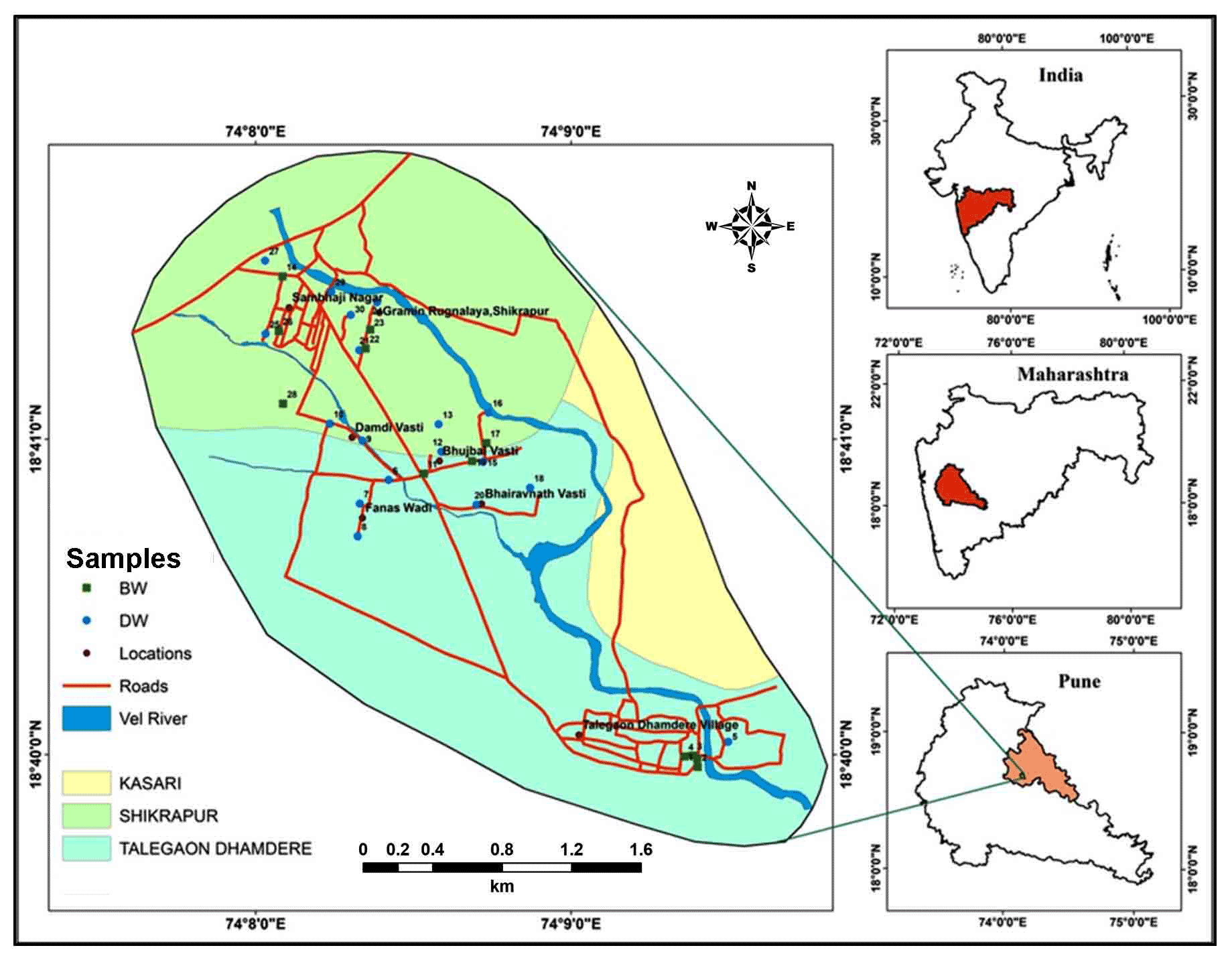 Gaikwad et al. (2012b) have analyzed physicochemical elements in groundwater from downstream part of the Vel River Basin and reported necessity of more attention due to more industrialization, growing residential area, having water scarcity problem with zones of hard to very hard water with many kidney stone patients. Therefore, this study was undertaken with spatial analysis of groundwater qualities using GIS and RS techniques in and around Shikrapur and Talegaon Dhamdhare, Pune district, Maharashtra (India). The study is focused on analysis of water related issues.