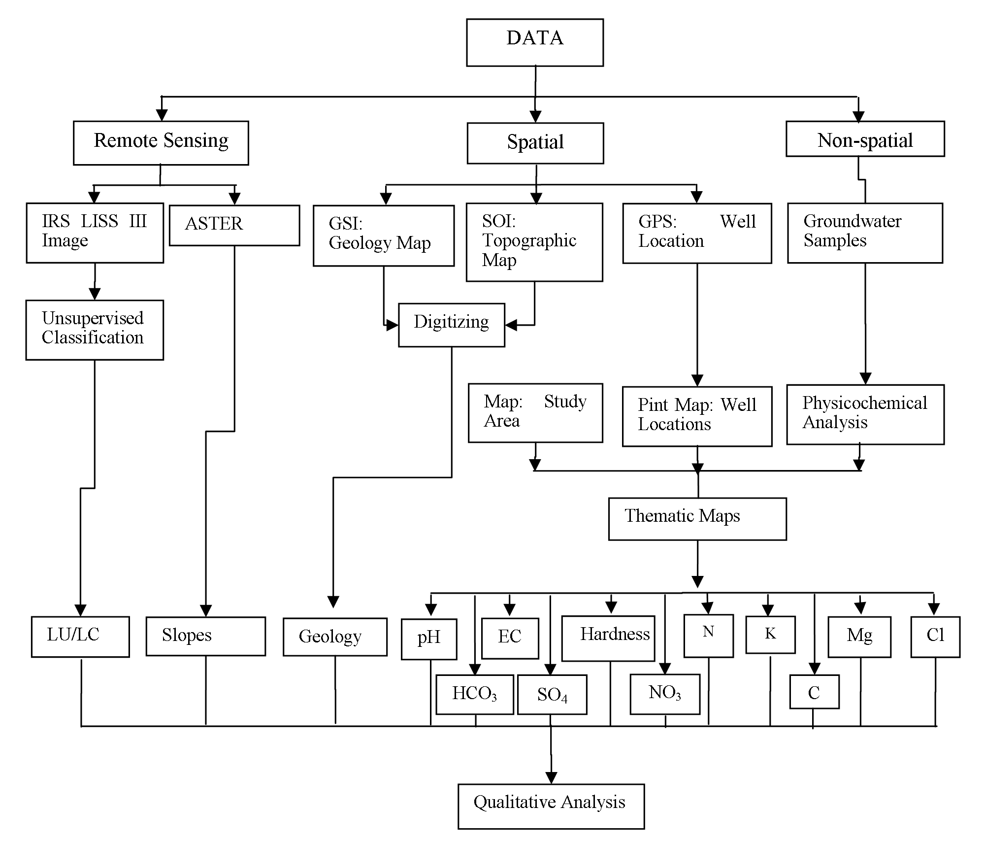 Analyzed data of groundwater can be used to find out its suitability for drinking, agriculture and industrial purposes (Babiker et al., 2007). This can be analyzed easily with the help of geospatial techniques in GIS [Geographic Information System] (Mahalingam et al., 2014). GIS is useful tool to analysis the changes in land use/land cover, lineament and groundwater qualities and for monitoring the groundwater resources (Chaudhary et al., 1996; Skidmore et al., 1997; Saraf, 1999; Epstein et al., 2002; Tjandra, et al., 2003; Shankar et al., 2010; Aravindan and Shankar,2011; Wagh et al., 2016; Kadam et al., 2018).