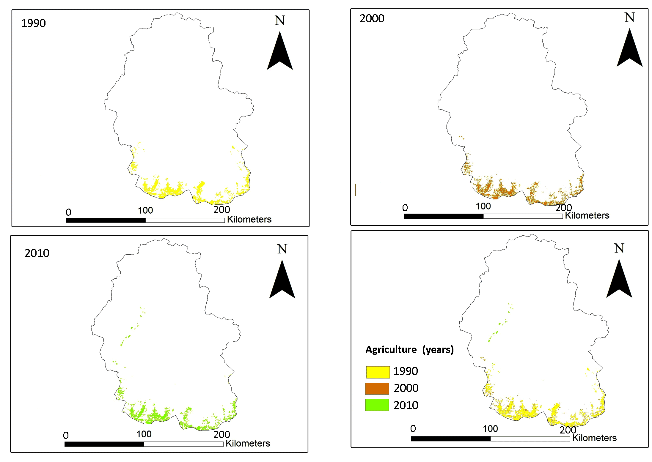 LULC datasets (1990, 2000 and 2010) downloaded from http://geoportal.icimod.org