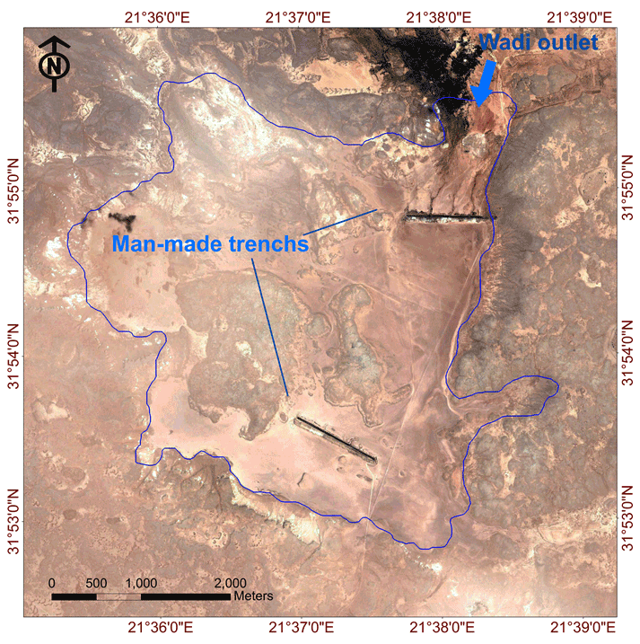 The outlets of the wadis mostly in the temporary lakes are topographically flat depressions located downstream.